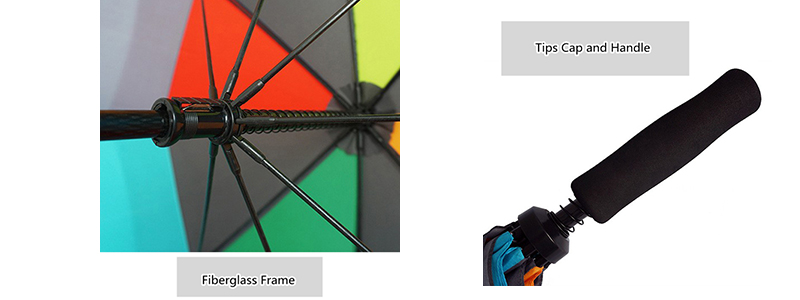 This Vented Golf Umbrella is constructed of a glass fiber shaft and frame, with a strong, waterproof 190-denier fabric, making it lightweight and easy to carry. Its unique vented design ensures that it will remain upright even in strong wind and heavy rain.