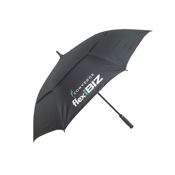 This automatic open/close black umbrella was specially customized for our client in the Philippines. Designed for durability and visibility, it features a double canopy with ventilation and a straight shaft construction.